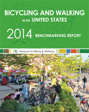 Benchmarking-2014-Cover-180In conjunction with the Centers for Disease Control and Prevention’s Healthy Community Design Initiative, the Alliance for Biking and Walking publishes the biennial Benchmarking Report to collect and analyze data on bicycling and walking in all 50 states, the 52 largest U.S. cities, and a select number of midsized cities. The Report combines original research with over 20 government data sources to compile data on bicycling and walking levels and demographics, safety, funding, policies, infrastructure, education, public health indicators, and economic impacts. It’s an essential go-to resource for public officials, advocates, decisionmakers, and researchers.